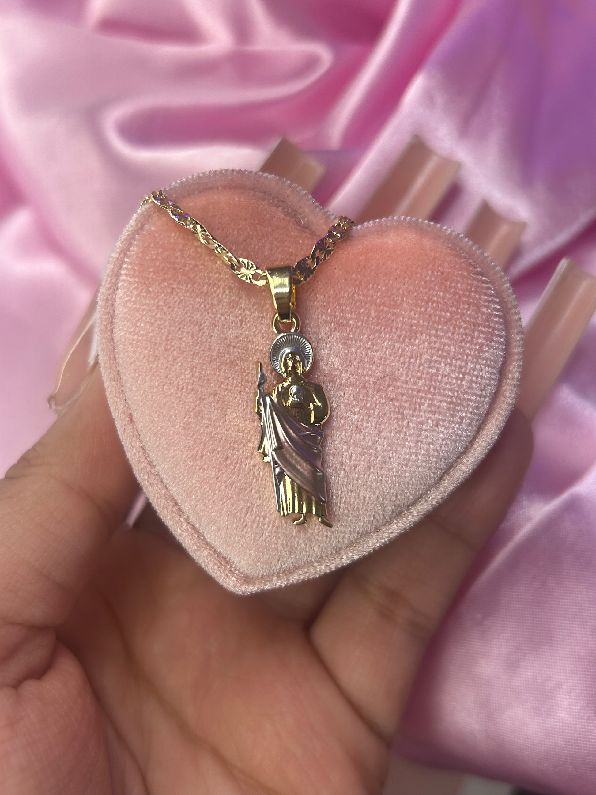 mini san judas pink cape necklace